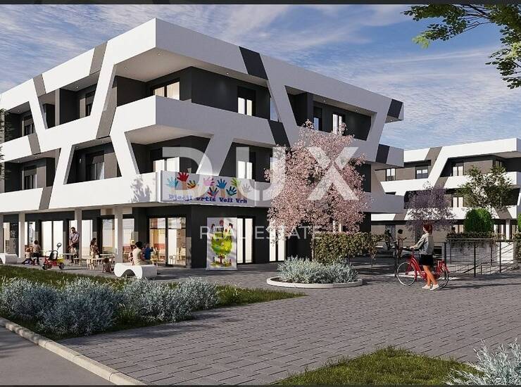 u prizemlju zgrada 1,2 i 3 predviđeni su poslovni prostori sa dječjim vrtićem od 150 m2, ljekarna, trgovine i druge uslužne djelatnosti koji će cijelom stambenom komplexu i budućim stanarima pružiti jednu novu dimenziju kvalitete života na jednom mjestu.