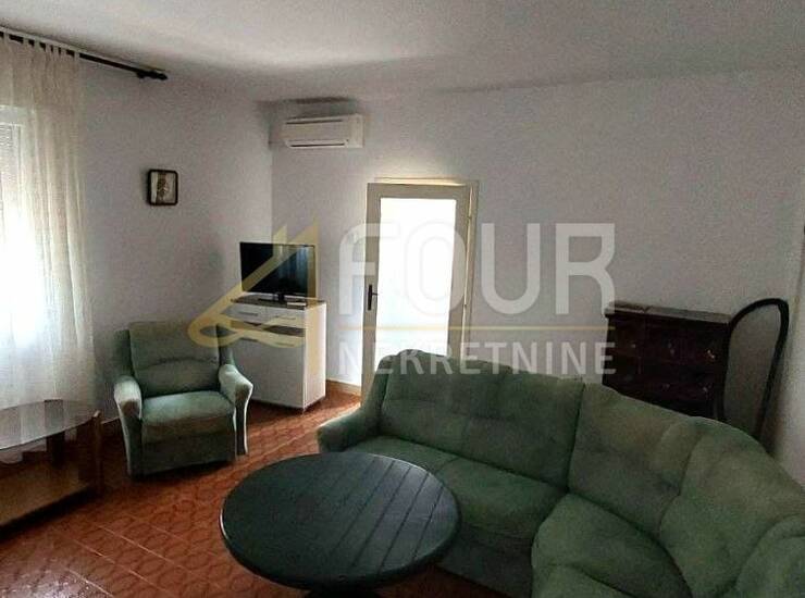 Ima zaseban ulaz i sastoji se od kuhinje s blagovaonicom, kupaonice, hodnika, dnevnog boravka i dvije spavaće sobe.