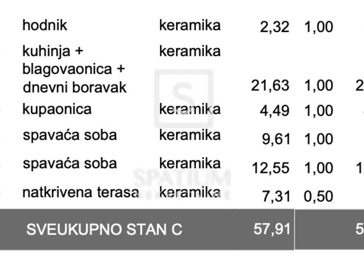 - kuhinje s blagovaonicom i dnevnim boravkom – 21.63 m²