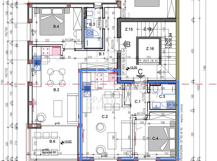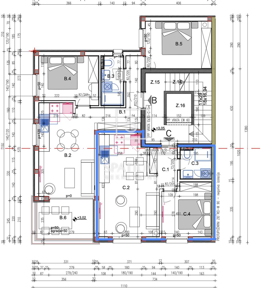 - kuhinje s blagovaonicom i dnevnim boravkom – 20.52 m²