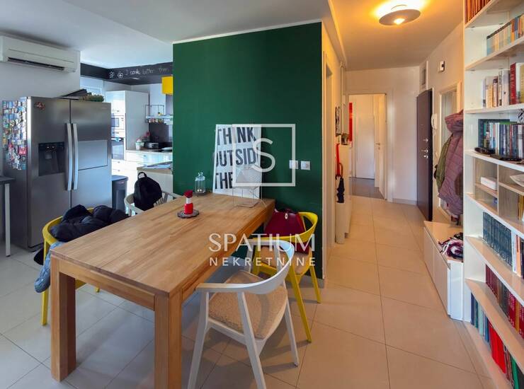 Raspored je izuzetno praktičan i funkcionalan: tri odvojene spavaće sobe, dnevni boravak povezan s kuhinjom, kupaonica i WC-a. Prostor je idealan za obiteljski život. Stan je kompletno adaptiran 2014. godine, uredno je održavan i bez potrebe za dodatnim ulaganjima.
