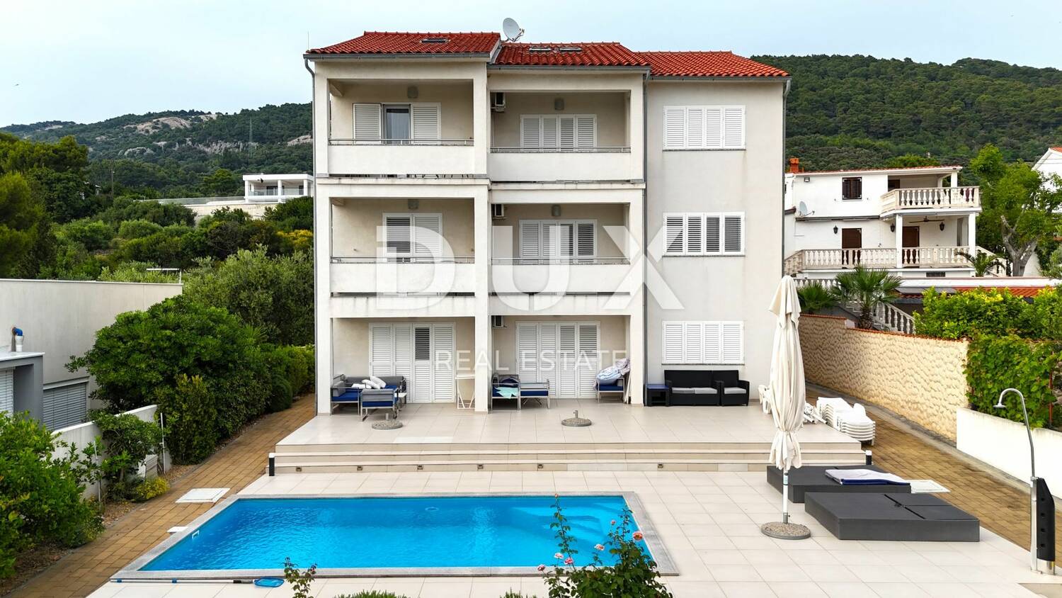 Kuća sa 6 opremljenih stambenih jedinica, površine cca 400 m2, na zemljištu od 836 m2, s bazenom 28 m2 i parkingom za više automobila.