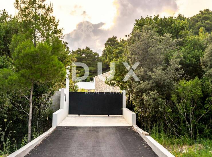 Na otoku Rabu, u mirnom mjestu od mora udaljenog 1 km, prodaje se moderna vila okružena gustom šumom s privatnim pristupom mostom preko potoka. Zemljište ima oko 5000 m2, a opremljeno je sigurnosnim kamerama i alarmnim sustavom. Na samom ulazu na posjed postavljena su čelična klizna vrata koja se otvaraju putem mobilne aplikacije. Projektiranju se pristupilo na jedinstven način, tako da vila bude zaštićena od vjetra, oborina i prodiranja sunca duboko u prostor u ljetnim mjesecima.
