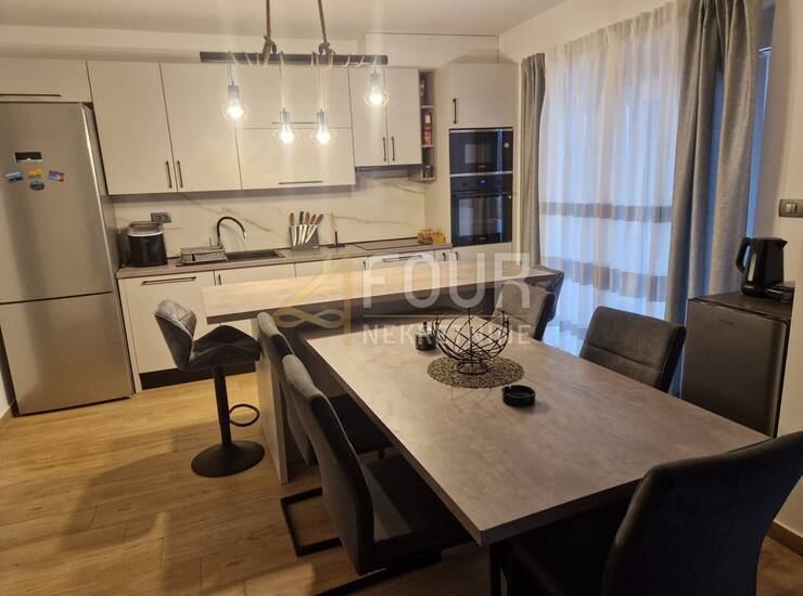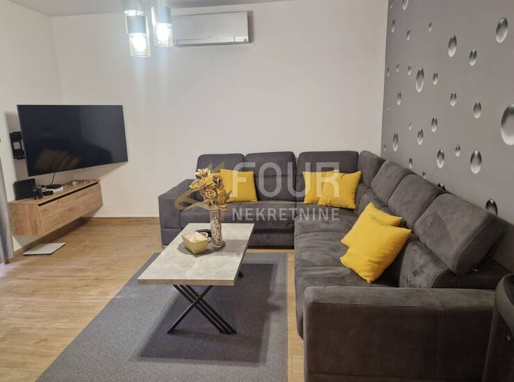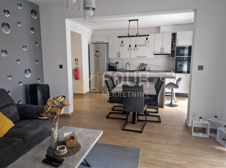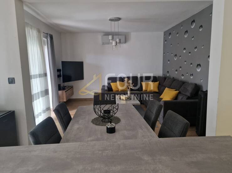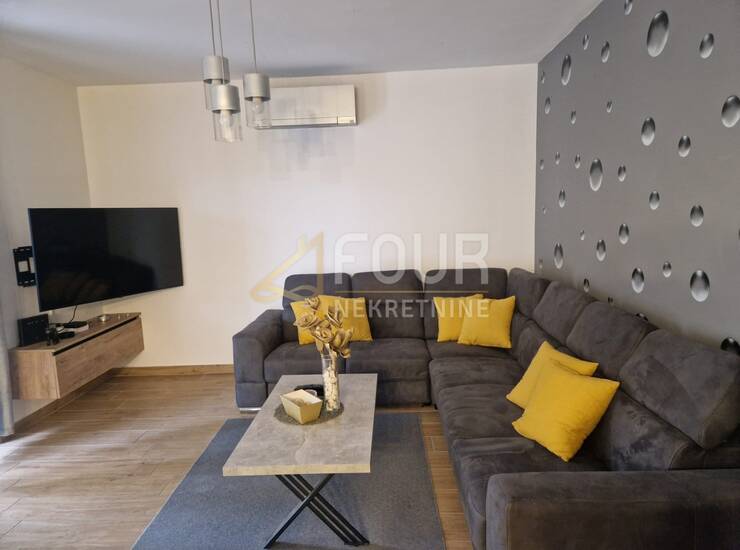 Raspored je iznimno funkcionalan i obuhvaća dvije spavaće sobe, od kojih master soba ima vlastitu kupaonicu, dodatnu spavaću sobu, dnevni boravak povezan s kuhinjom i blagovaonicom te izlaz na terasu i zajedničku okućnicu. U potpunosti je adaptiran 2023. godine, uključujući instalacije vode i struje, kupaonicu, keramiku, kao i krov i fasadu objekta. Opremljen je PVC stolarijom i klima uređajem te se prodaje potpuno namješten, s novim namještajem rađenim po mjeri.