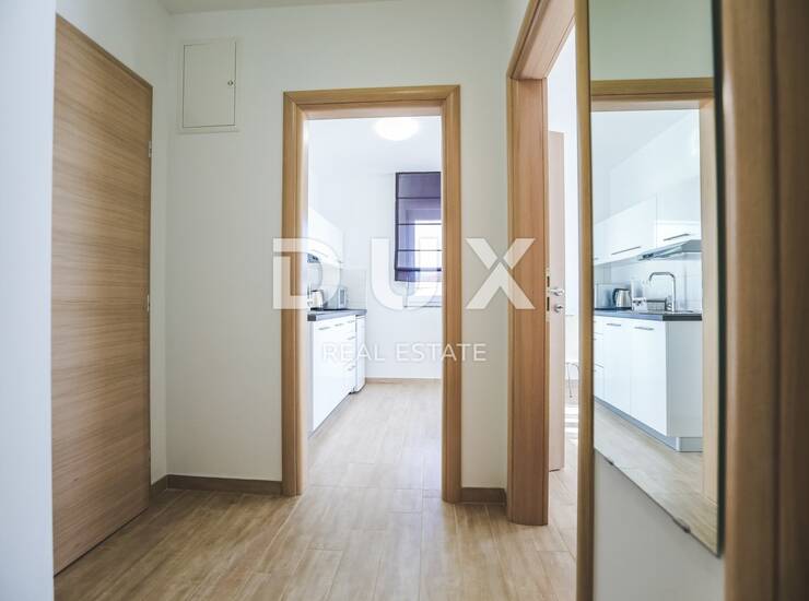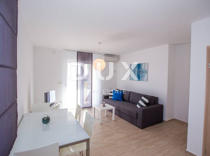 Moderan namještaj, klimatiziran i spreman za useljenje. Orijentacija je jugozapadna, što znači puno prirodnog svjetla i topline tijekom cijelog dana.