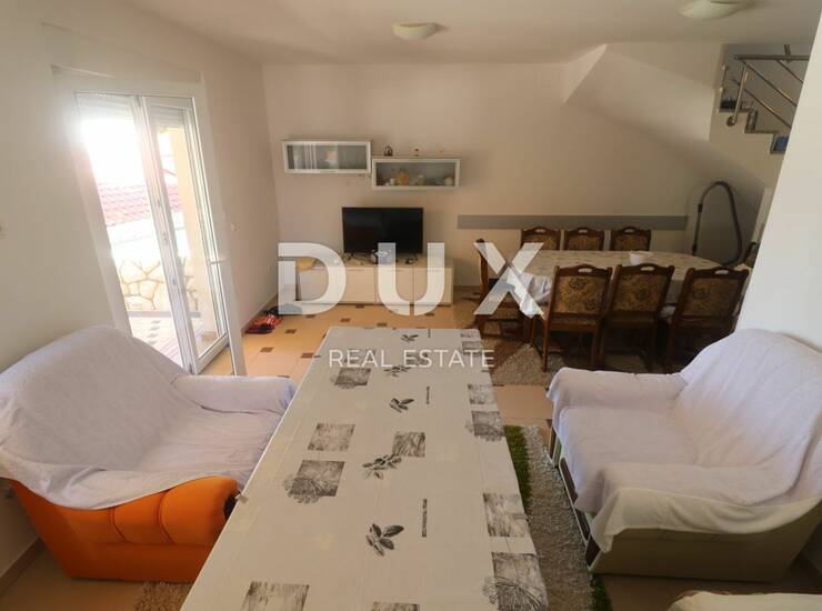 Posredujemo u prodaji predivnog dvoetažnog apartmana u blizini mora. Odlična nekretnina novije gradnje koja se sastoji od dnevnog boravka, kuhinje, kupatila, ostave i natkrivene terase u prizemlju, dok se na 1. katu nalaze tri spavaće sobe i kupaona. Apartman je opremljen na svakoj etaži jednim klima uređajem, a pripremljena je instalacija za podno grijanje na struju. Pripada mu dio okućnice i parkirno mjesto. Prodaje se namješten. Preporuka agenata koje možete kontaktirati za više informacija i ogled.