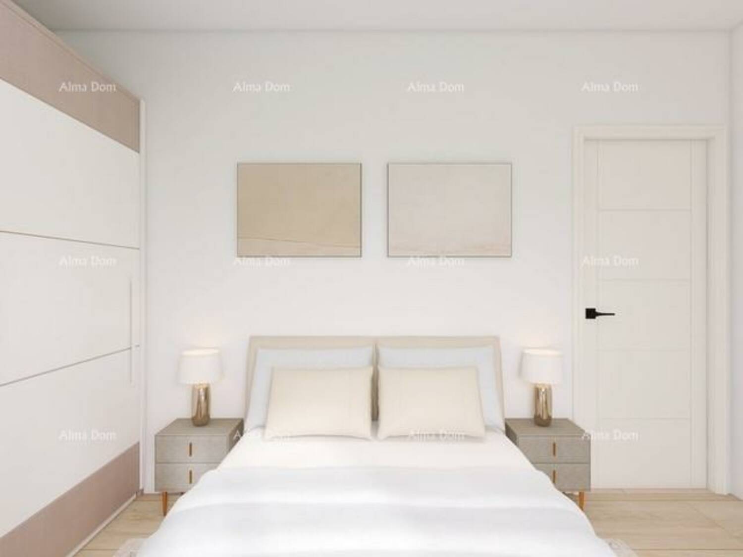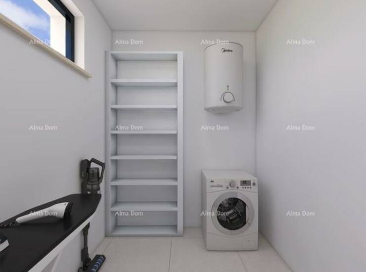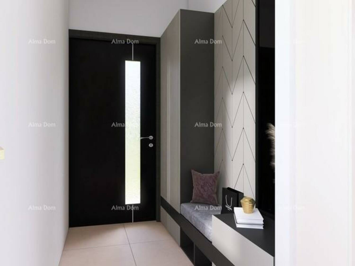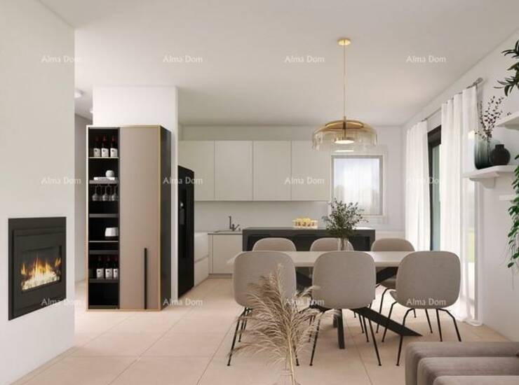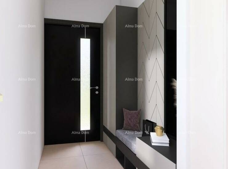 Sastoji se od ulaza, kuhinje, blagovaonice, dnevnog boravka, 1 spavaće sobe, kupaonice i dodatne prostorije/vešeraja. Iz dnevnog boravka se izlazi na veliku terasu s ljetnom kuhinjom.