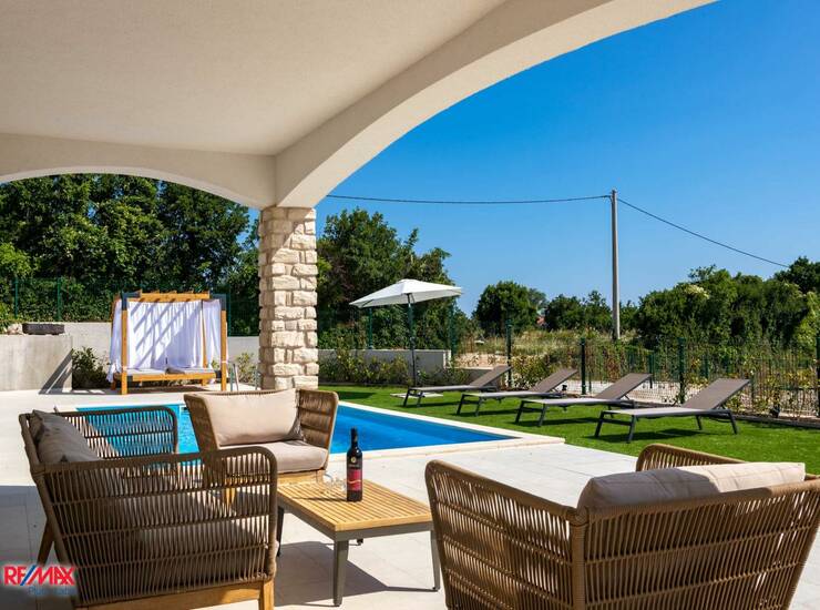 Stambena površina iznosi 170 m², a parcela 700 m². Udaljenost od plaže je 3 km.