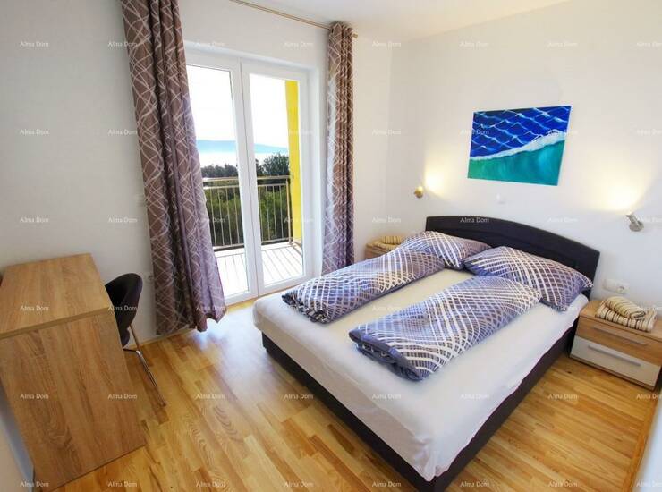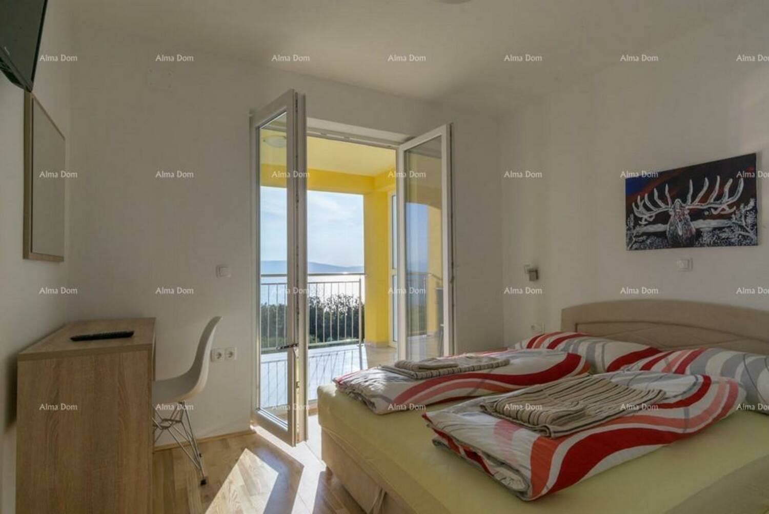 U mirnom području općine Raša smještena je prostrana apartmanska kuća koja pruža nevjerojatan pogled na Kvarnerski zaljev. Objekt ukupne površine 438 m² prostire se na tri razine: prizemlje te dva kata (ukupno 20 soba).