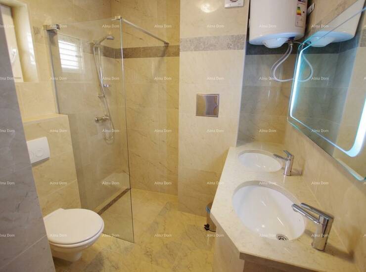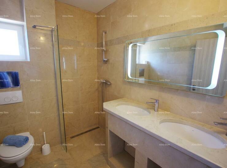 Objekt odlikuje se kvalitetnom izvedbom: masivni mramor i prirodni kamen prisutni su u većem dijelu interijera, dok su spavaće sobe opremljene drvenim parketom.