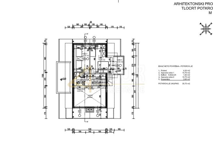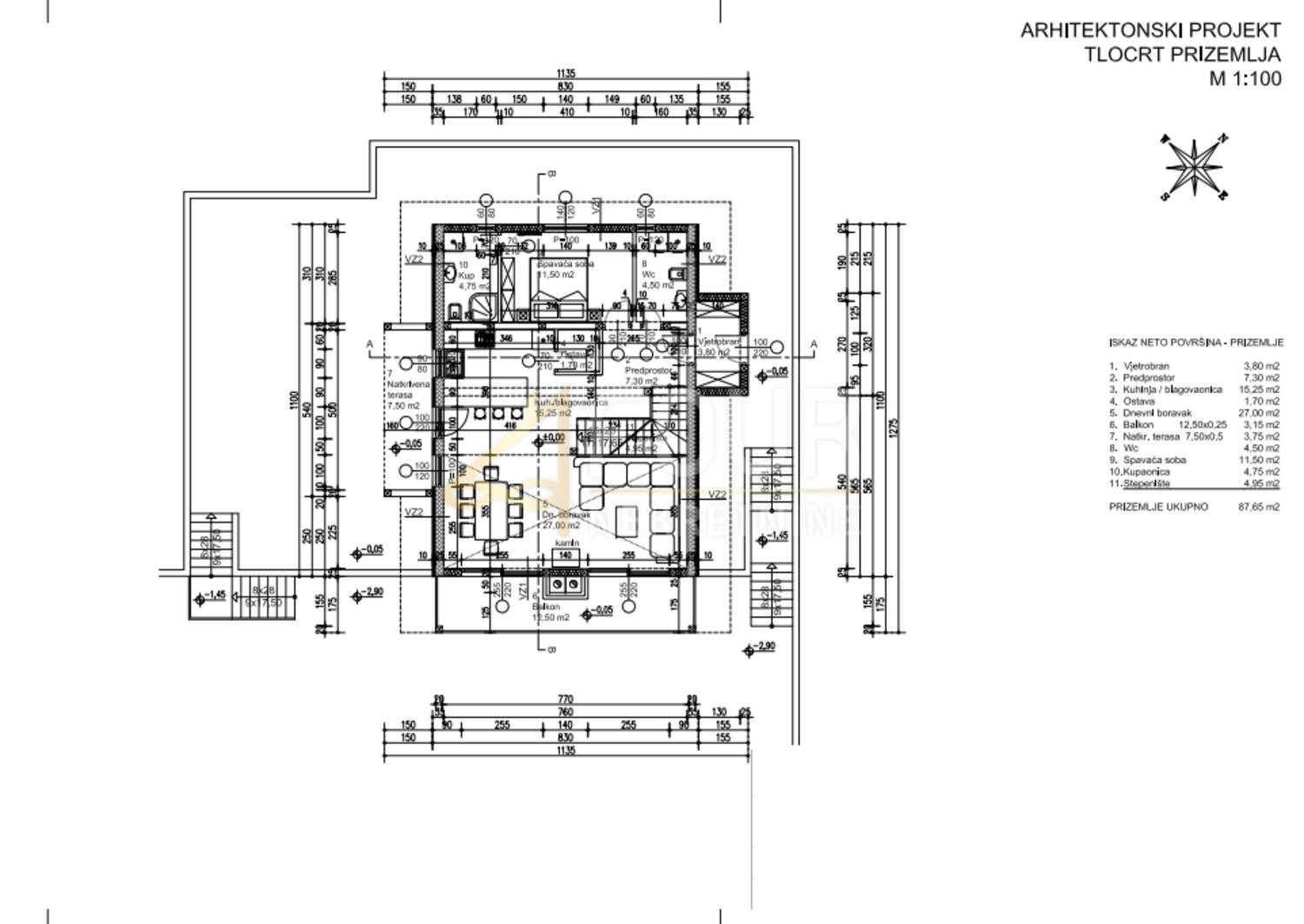 Teren je djelomično ravan, dok se jedan dio lagano uzdiže na brdašce, što pruža dodatne mogućnosti za zanimljivo krajobrazno uređenje i atraktivan arhitektonski smještaj kuće.