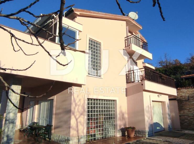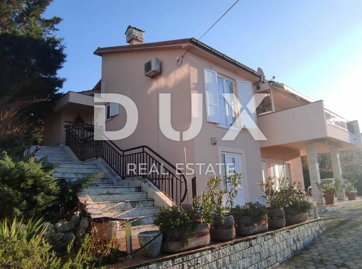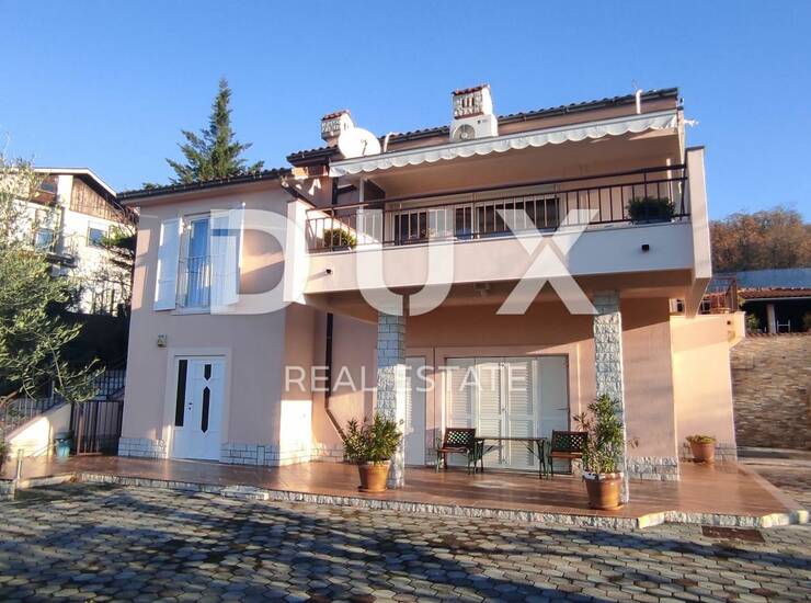 Posredujemo u prodaji jedne od rijetkih samostojećih kuća na tržištu. Nalazi se unutar gradskih linija u blizini grada s predivnim pogledom na more i Kvarner. Isto tako posjeduje redom prostranu okućnicu, sjenicu za druženje, bazen, vrt, garažu i dva stana od kojih je jedan spreman za useljenje. Kuća je relativno nove gradnje pa su stoga fasada i krov u urednom stanju, što se vidi i na slikama. Kuća je prepuna potencijala i vlasnici su za dogovor oko cijene.