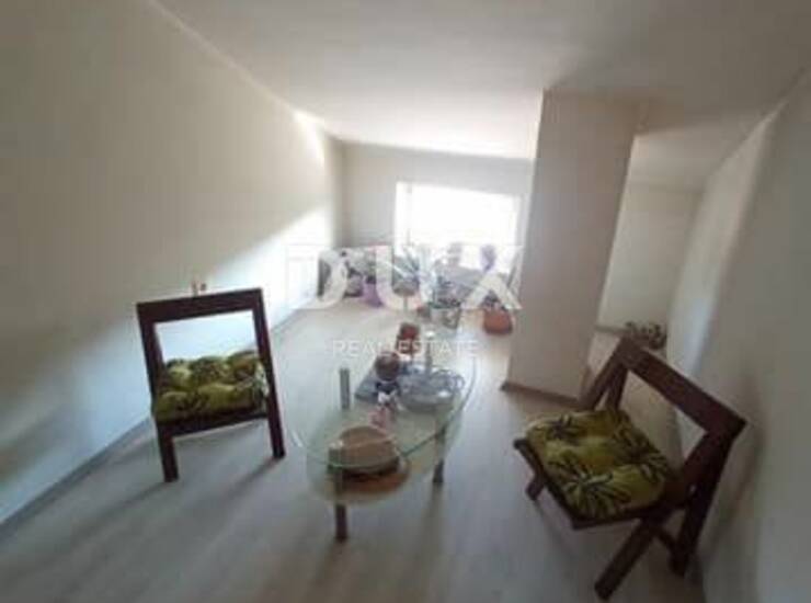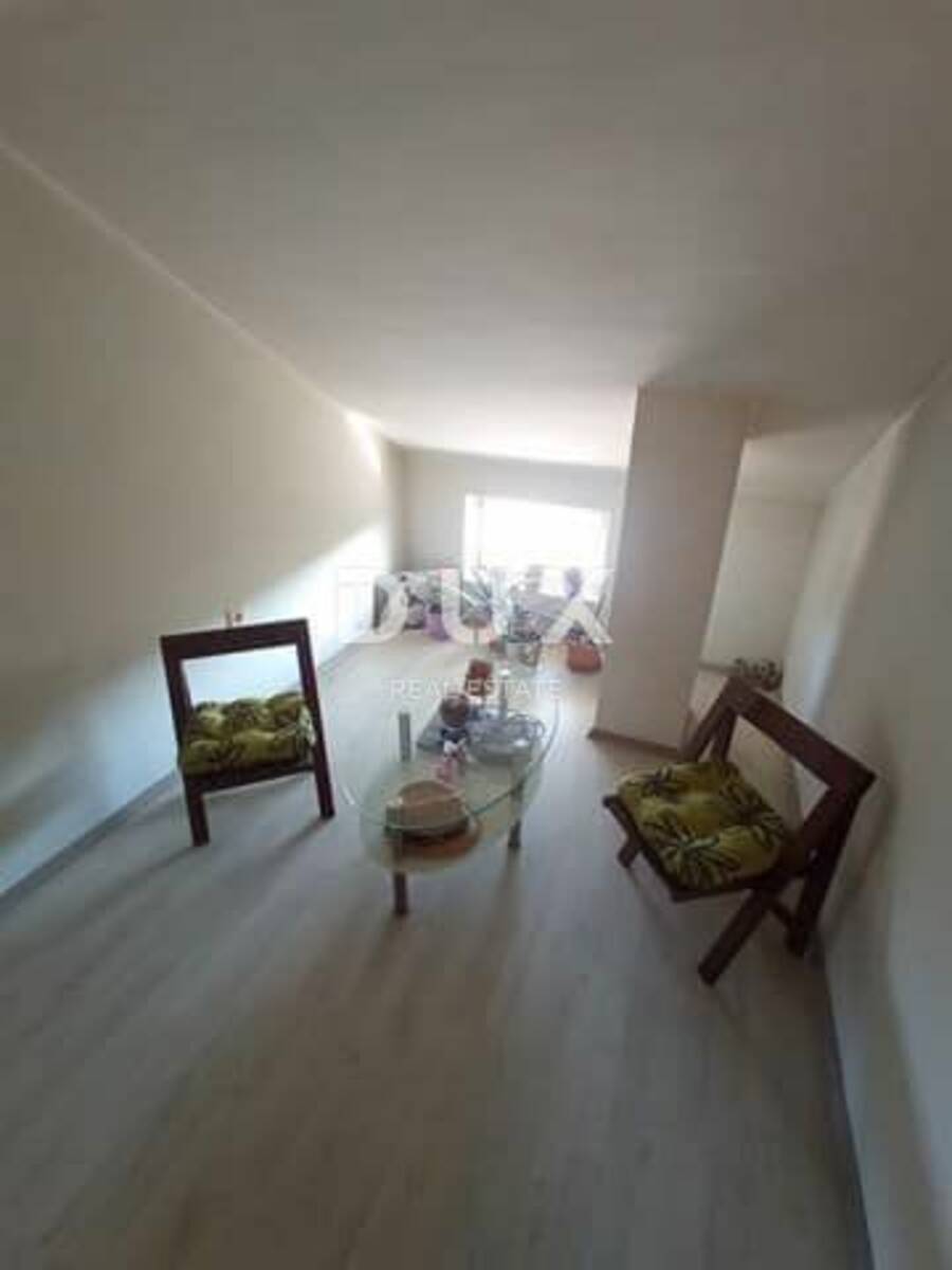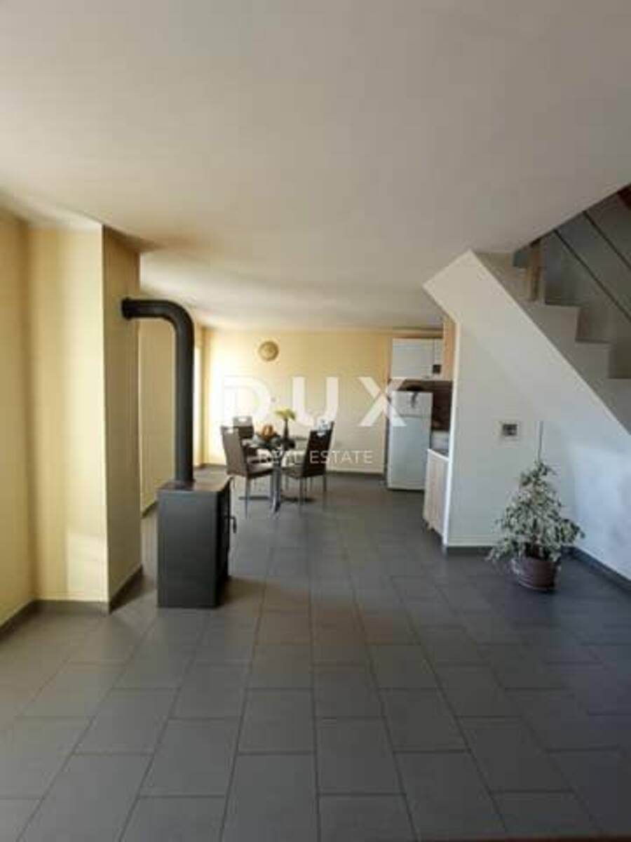 Gornji stan površine 100 m2 je na dvije etaže. Na doljnjoj etaži je veliki dnevni boravak, kuhinja, kupaonica i wc, a na katu se nalaze 3 sobe.