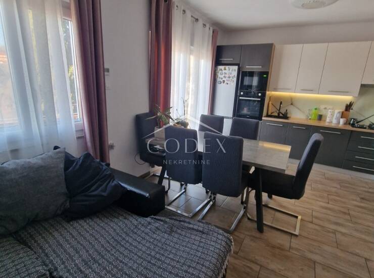 Kuća se sastoji od dvije odvojene stambene jedinice sa zasebnim ulazima, što omogućuje fleksibilno korištenje prostora, bilo za stanovanje jedne ili više obitelji, bilo za kombinaciju stanovanja i najma. Gornji stan, površine 87 m², u potpunosti je adaptiran 2020. godine te se sastoji od tri spavaće sobe, prostranog dnevnog boravka povezanog s kuhinjom, kupaonice s WC-om i dodatnog zasebnog WC-a. Stan je uredan, održavan i spreman za useljenje uz minimalno osvježenje.