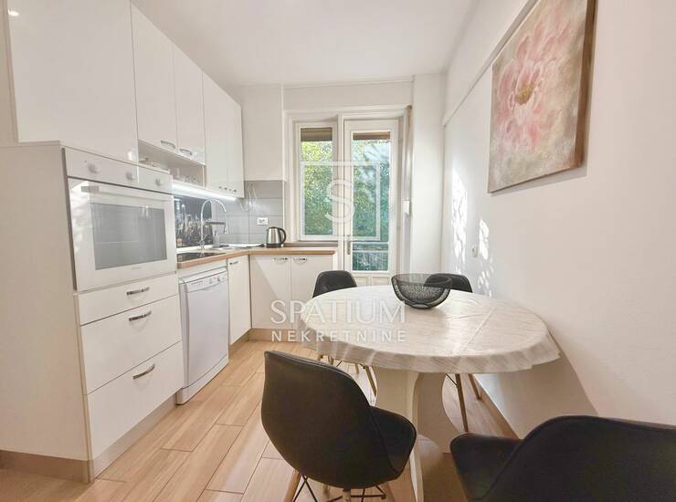 BANDEROVO, u ponudi imamo adaptiran gospodski stan ukupne površine 60m2. Sam stan sastoji se od dnevnog boravka (16 m2), kuhinje s blagovaonom (8 m2), dvije spavaće sobe (16 i 6 m2), kupaonice, toaleta, i hodnika. Iz dnevnog boravka se izlazi na prostrani sjeveroistočni balkon, a iz kuhinje na zapadni balkon okružen zelenilom. Kompletna adaptacija je izvršena 2019. godine, kada su promijenjene instalacije vode, instalacije struje, vanjska stolarija (PVC i obnovljena drvena), podne obloge, klima uređaj, ... Dodatno, stavljena je unutarnja izolacija na sve zidove u stanu, rezultatom čega prosječne režije kroz godinu ne prelaze 100 eura. Smješten na idealnoj lokaciji za studente Medicinskog (50 m) i Tehničkog Fakulteta (100 m), te poslovne ljude i obitelji koji žele biti na dohvat samog centra grada.