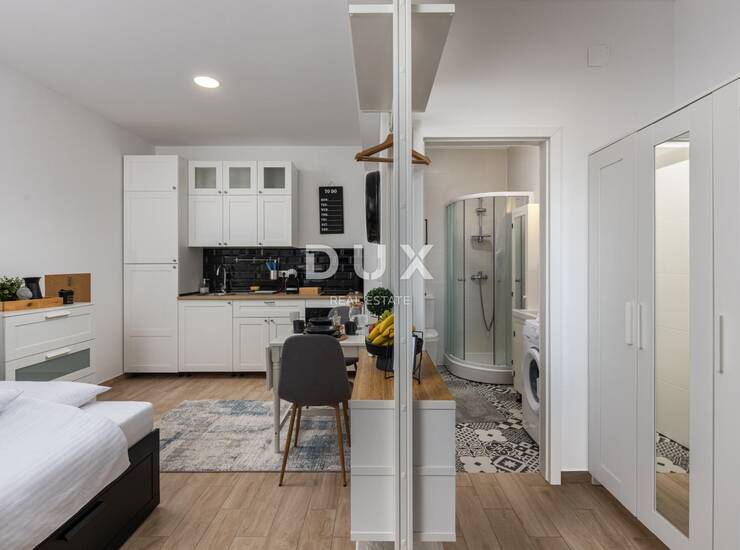 U ponudi je potpuno renoviran i moderno namješten stan površine 36 m², smješten u visokom prizemlju kvalitetno obnovljene zgrade. Stan se sastoji od dnevnog boravka s kuhinjom i kupaonice, a dodatnu praktičnost pruža spremište u suterenu. Posebna prednost ove nekretnine je vlastito označeno parkirno mjesto na ograđenom i uređenom parkiralištu – prava rijetkost u užem centru grada.