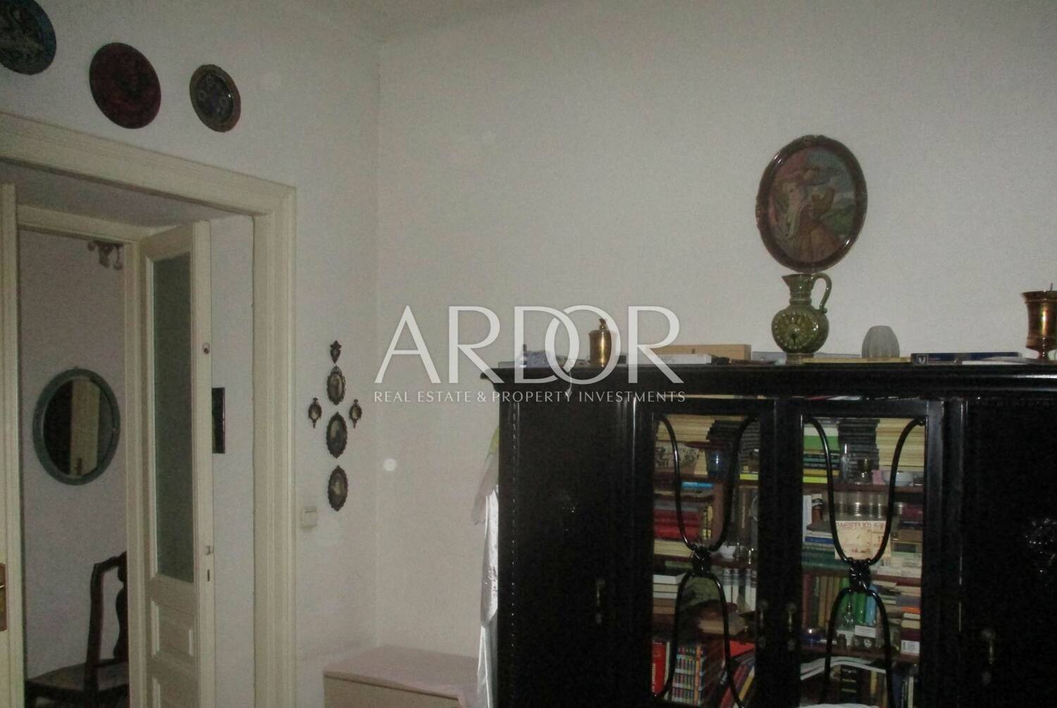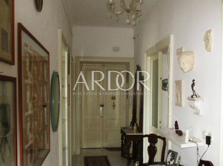 Vrlo lijep, gospodski, sunčan trosobni stan u mirnom dijelu grada na Belvederu udaljenom desetak minuta hoda od Korza, površine 90 m2 + pripadajuća drvarnica. Stan se nalazi u visokom prizemlju, s južne strane ima veliki balkon koji gleda na park a dijelom i na more. Na balkonu postoji veća, korisna ostava. Osim za stambene svrhe, stan je zbog blizine centru, odličan i kao poslovni prostor. Prodaje se sa ili bez namještaja kojim je opremljen, po dogovoru.