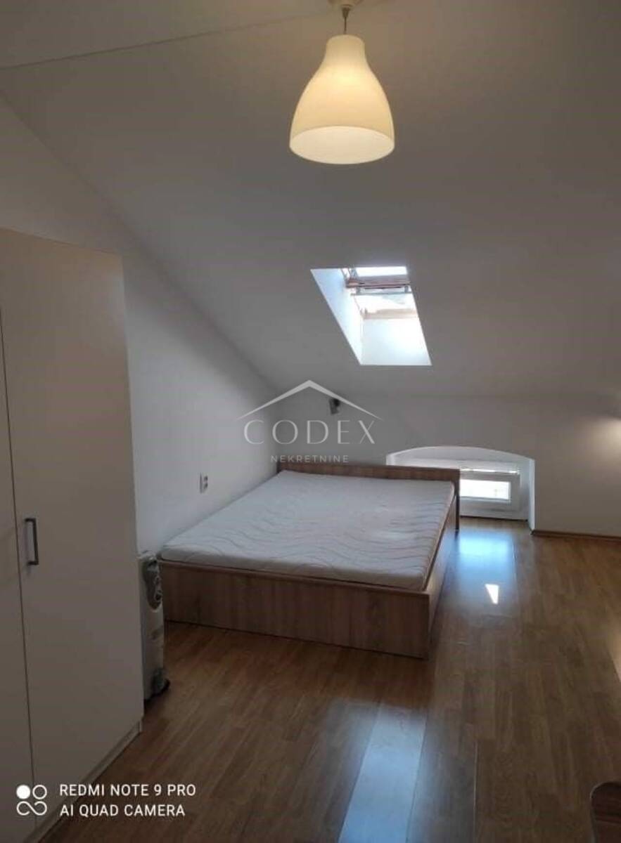 Stan se smjestio u potkrovlju zgrade, te se sastoji od 3 spavaće sobe, kuhinje s blagovaonom, kupaone i odvojenog WC-a, ostave i vanjske drvarnice od 6m2.