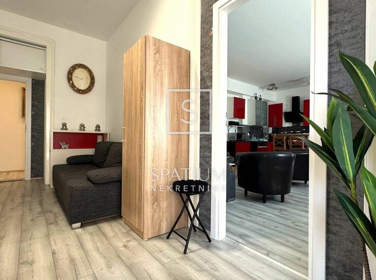 Stan je kompletno renoviran prije dvije godine kada su zamijenjene sve instalacije stuje i vode, ugrađene nove inverter klime, spušteni stropovi s rasvjetom, PVC stolarija s troslojnim staklom, protuprovalna vrata, potpuno renovirana kupaonica kao i podne obloge u cijelom stanu.