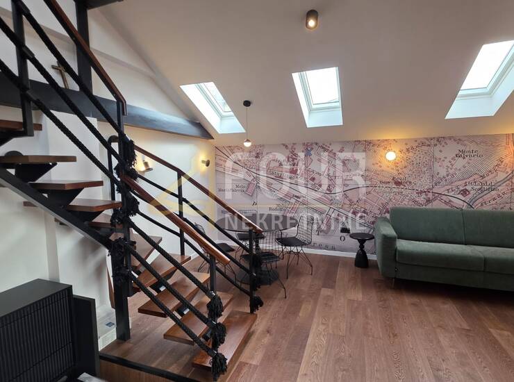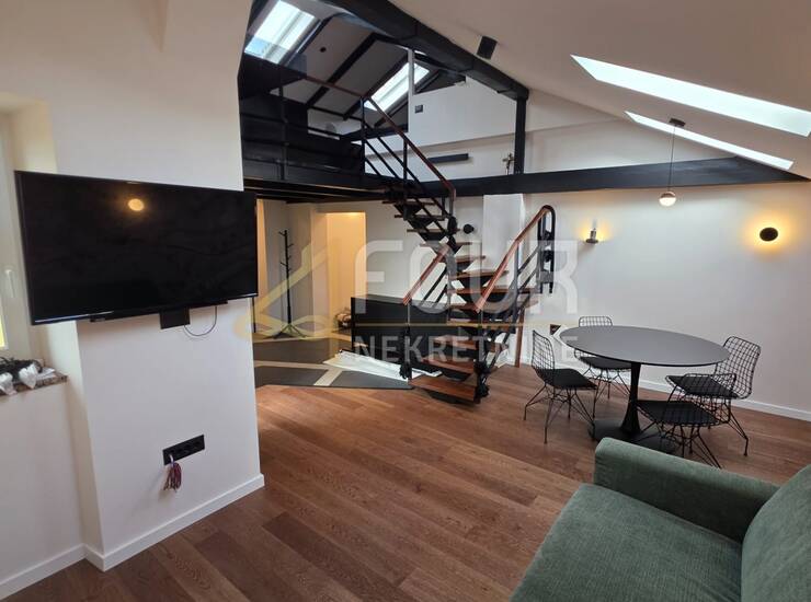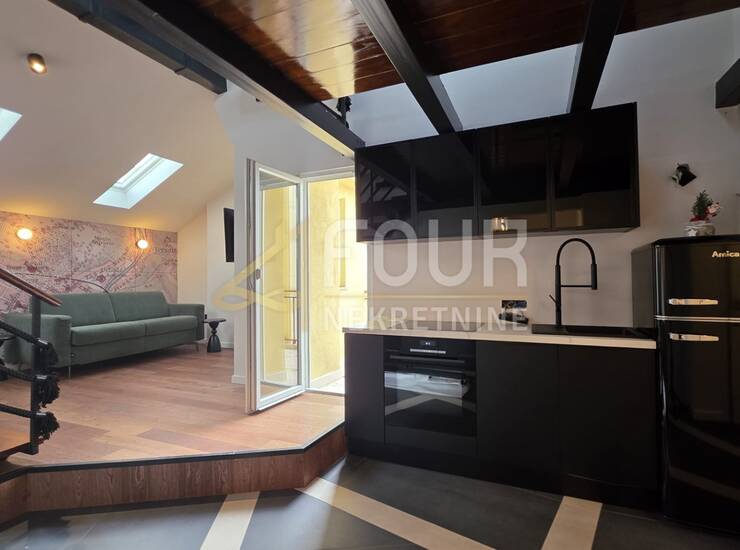 Prodaje se dizajnerski uređen stan s galerijskim prostoromu širem centru grada, smješten u urednoj stambenoj zgradi s novom fasadom.