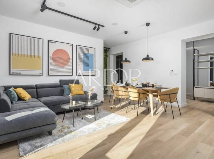 Objekt je u potpunosti renoviran “iz nule”, pri čemu su promijenjene sve instalacije, izvedena nova izolacija, ugrađena vrhunska vanjska stolarija, novi podovi i sustav grijanja i hlađenja. Uređenje je moderno, sofisticirano i promišljeno do najsitnijih detalja, s naglaskom na dugotrajnost, komfor i estetsku čistoću prostora. Visoki stropovi i veliki prozori dodatno naglašavaju osjećaj prostranosti i svjetlosti.