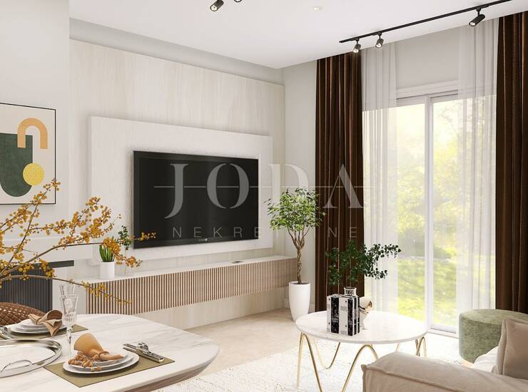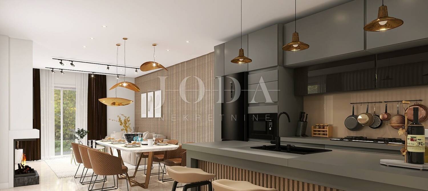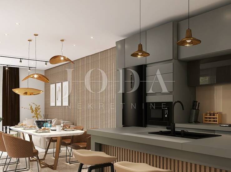 Stan raspolaže s jednim vanjskim parkirnim mjestom te garažom površine 23 m². Posebnu vrijednost ovoj nekretnini daje visok standard opreme koji uključuje podno grijanje, klima uređaje u svakoj prostoriji, električne rolete s ugrađenim komarnicima, videoportafon te vlastitu fotonaponsku elektranu, što osigurava iznimnu energetsku učinkovitost i uštedu. Zahvaljujući kvalitetnoj gradnji i pažljivo odabranim materijalima, stan nosi energetski razred A+, što dodatno potvrđuje njegovu vrhunsku kvalitetu.