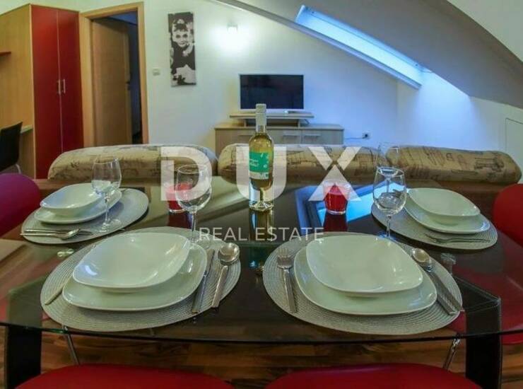 U centru grada Rijeke posredujemo u prodaji namještenog stana koji se sastoji od dnevnog boravka sa kuhinjom i blagavaonicom, spavaće sobe, kupaonice i spremišta. Nalazi se u potkrovlju na trećem katu manje stambene zgrade. Stan je obnovljen i namješten, kao takav se prodaje. Krovište zgrade je također obnovljeno.