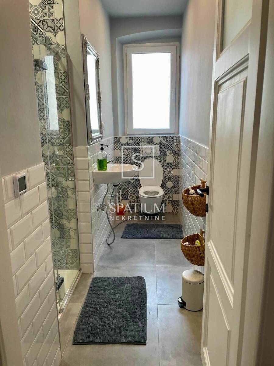Grijanje je riješeno sa četiri inverter klima uređaja te sa podnim grijanjem u kupaonicama. Stan je jako svijetao i prozračan zbog devet velikih prozora koji omogućuju mnogo dnevne svjetlosti. Smješten je u centru grada a opet u jako mirnom i tihom kvartu gdje se nalazi sve nadohvat ruke. Parking je osiguran u obližnjoj garaži po povlaštenim uvjetima.