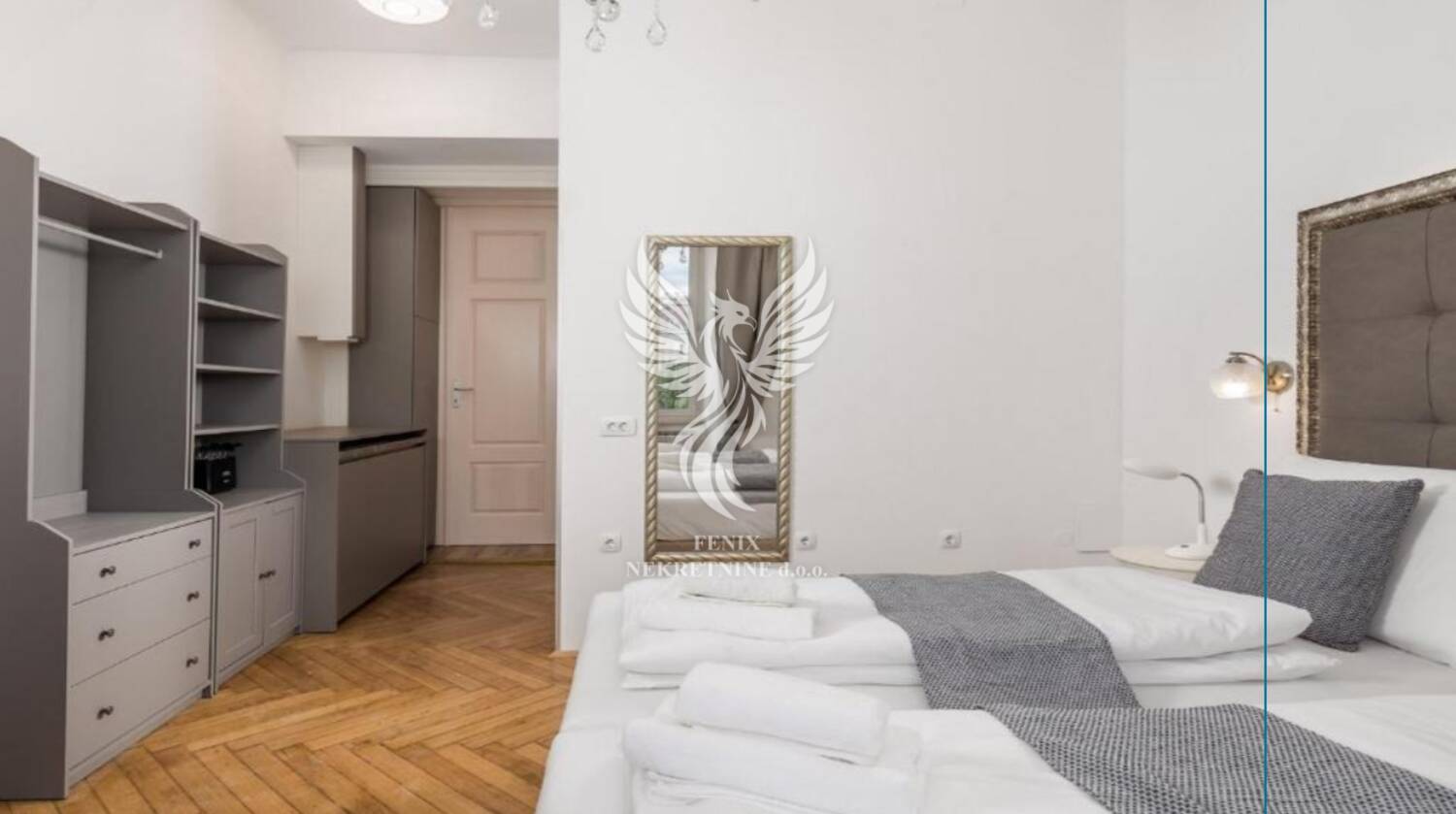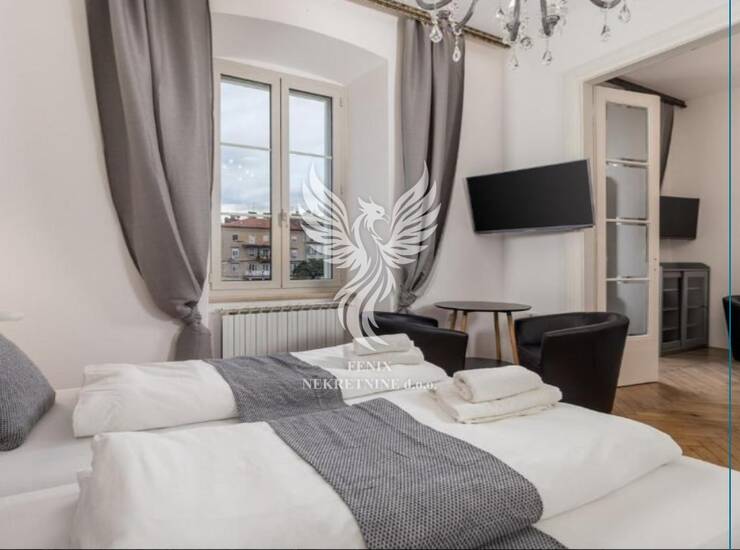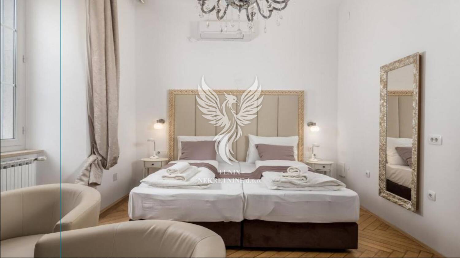 Ova nekretnina idealna je prilika za sve koji žele živjeti u centru zbivanja ili investirati u nekretninu s velikim potencijalom. Naime stan je podijeljen u dva studio apartmana, koji su povezani zajedničkim hodnikom. Svaki apartman ima po dvije prostorije, odnosno dvije sobe i kupaonice, a sveukupno ima 8 ležaja. Apartmani su već više od četiri godine uspješno u funkciji turističkog najma te posjeduju kategorizaciju od 4 zvjezdice. Ostvareni godišnji bruto prihod u proteklom razdoblju premašivao je 10 % tražene kupoprodajne cijene, što ovu nekretninu jasno pozicionira kao atraktivnu investicijsku priliku.