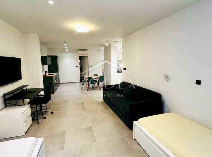 Odlikuje ga odličan tlocrt koji, uz minimalne preinake, omogućuje prenamjenu u komotan dvosobni stan s dnevnim boravkom, budući da u stanu nema nosivih zidova. Tijekom temeljite renovacije zamijenjene su sve instalacije, uključujući elektroinstalacije, vodovodne i kanalizacijske cijevi, kao i vanjska i unutarnja stolarija. Dodatne prednosti su zasebno novo brojilo vode te provedena optička mreža do stana.