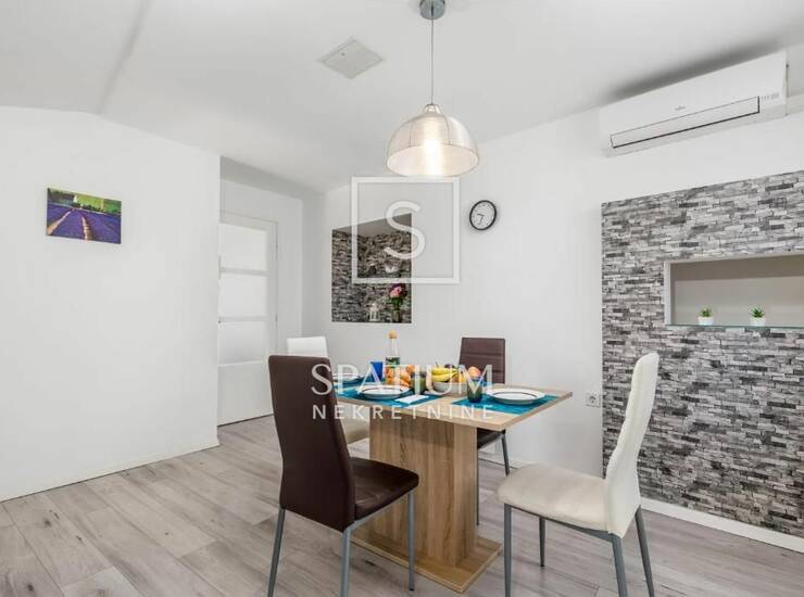 Prodaje se kompletno namješten a obzirom na uhodan dnevni najam tijekom ljetnih mjeseci te iznajmljivanja studentima u ostalom dijelu godine, odlična je prilika za investiciju.