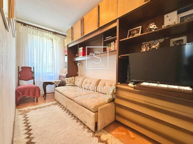 Stan se sastoji od ulaznog hodnika, dvije prostrane sobe, dnevnog boravka te kupaonice. Iz dnevnog dijela izlazi se na osunčani zapadni balkon. Većinska adaptacija izvršena je 2009. godine, kada su zamijenjene kompletne instalacije vode i struje te podne obloge. Zahvaljujući zapadnoj orijentaciji, stan je tijekom drugog dijela dana obasjan prirodnom svjetlošću.