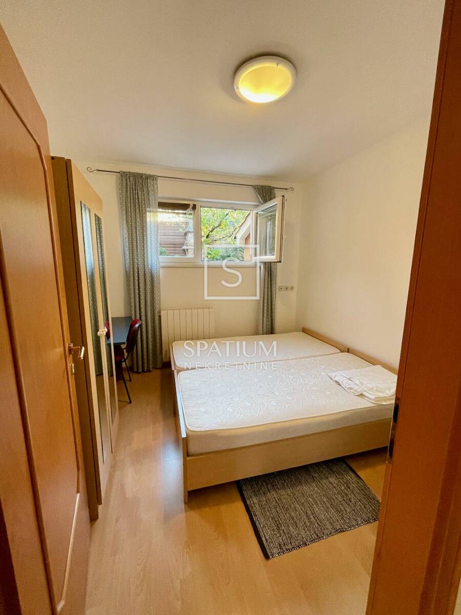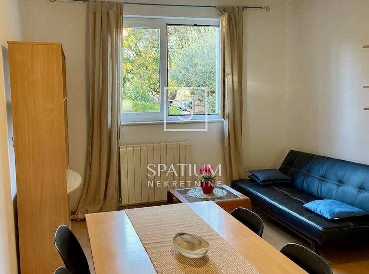 DONJA DRENOVA, u ponudi je jednosoban stan u prizemlju odlično održavane samostojeće obiteljske kuće. Ulazni hodnik dijeli stan na spavaći dio u kojem je jedna prostrana spavaća soba i kupaonica dok je s južne strane glavna stambena prostorija koja dijeli funkciju kuhinje, blagovaonice i dnevnog boravka. Zahvaljujući jugozapadnoj orijentaciji prostor je ispunjen obiljem prirodnog svjetla. Kuća je u potpunosti renovirana 2012. godine i uredno je održavana što je vidljivo po fasadi, krovu te vanjskim stubištem. Stanu pripada dodatno spremište. Kuća ima zajedničku kotlovnicu s centralnim plinskim grijanjem. Zajednička okućnica ima roštilj i mjesto za parking. Preko puta kuće postoji dodatan prostor za parking. Kuća je etažirana, bez tereta i ima rješenje o izvedenom stanju.