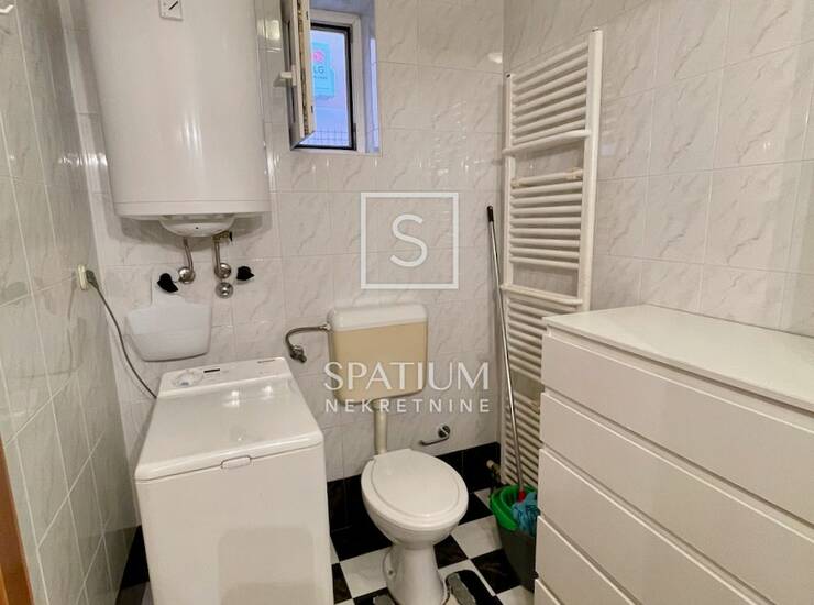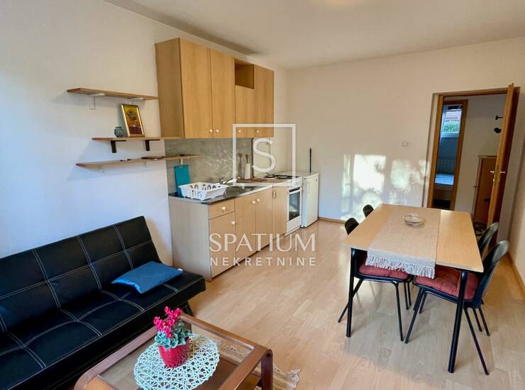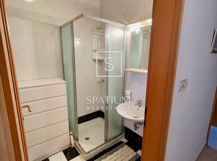 DONJA DRENOVA, u ponudi je prizemna etaža odlično održavane samostojeće višeobiteljske kuće. Etaža ima dva ulaza. Jedan ulaz je u jednosoban stan. Ulazni hodnik dijeli stan na spavaći dio u kojem je jedna prostrana spavaća soba i kupaonica dok je s južne strane glavna stambena prostorija koja dijeli funkciju kuhinje, blagovaonice i dnevnog boravka. Drugi ulaz je u poslovni prostor. Ulazna prostorija "L" oblika ima funkcionalan uredski namještaj. Iza toaleta je dodatna odvojena prostorija. Pretprostor ispred odvojene uredske prostorije graniči s hodnikom jednosobnog stana koji je odvojen knaufom. U slučaju potrebe za većim prostorom, moguće je jednostavnom adaptacijom izvesti dvosoban stan s dodatnim manjim poslovnim prostorom.