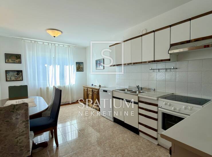 DONJA DRENOVA, u ponudi je prostran trosoban stan koji se proteže kroz cijelu prvu etažu odlično održavane samostojeće obiteljske kuće. Ulazni hodnik dijeli etažu na spavaći dio u kojem su tri spavaće sobe i kupaonica dok je s južne strane velika kuhinja s blagovaonicom te dnevni boravak iz kojeg se izlazi na natkriveni balkon s kojeg se pruža pogled na more. Zahvaljujući jugozapadnoj orijentaciji i velikim staklenim površinama prostorije su ispunjene obiljem prirodnog svjetla. Kuća je u potpunosti renovirana 2012. godine i uredno je održavana što je vidljivo po fasadi, krovu te vanjskim stubištem. Stanu pripada dodatno spremište. Kuća ima zajedničku kotlovnicu s centralnim plinskim grijanjem. Stan ima klimu u dnevnom boravku. Zajednička okućnica ima roštilj i mjesto za parking. Preko puta kuće postoji dodatan prostor za parking. Kuća je etažirana, bez tereta i ima rješenje o izvedenom stanju. Stan je odličan odabir za obitelj koja je u potrazi za nekretninom u blizini vrtića i škole.