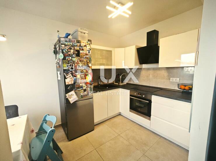 Stan se sastoji od dvije spavaće dobe, dnevnog boravka, kuhinje s blagovaonicom, hodnika, kupatila i terase. Uredan, održavan i kompletno namješten! Opremljen dizalicom topline za hlađenje i grijanje fencoilerima! Antracit vanjska stolarija i namještaj po mjeri!
