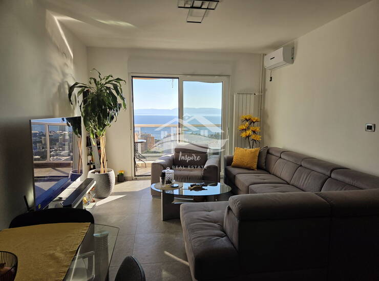 Stan ima odlično osmišljen raspored – dnevni boravak, kuhinja i blagovaonica povezani su u open-space prostor koji vodi na balkon s predivnim panoramskim pogledom na more. Idealan je za ugodan obiteljski život, ali i kao atraktivna investicija za iznajmljivanje.