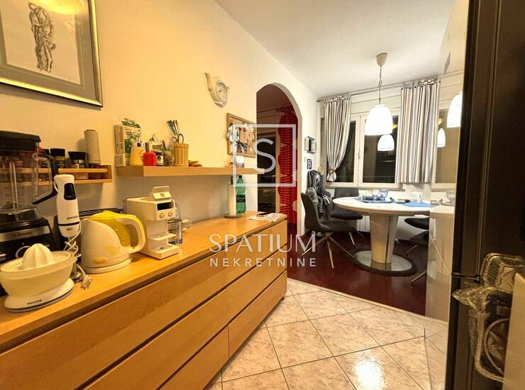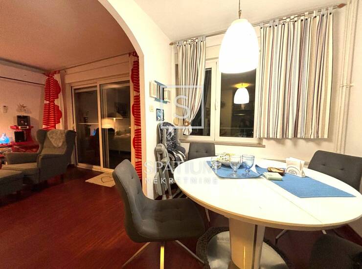 Kompletno je adaptiran uređen i opremljen kvalitetnim namještajem i kućanskim aparatima (PVC stolarija, ugradbeni ormari, klima..), a kao takav se i prodaje. Grijanje je centralno na plin.