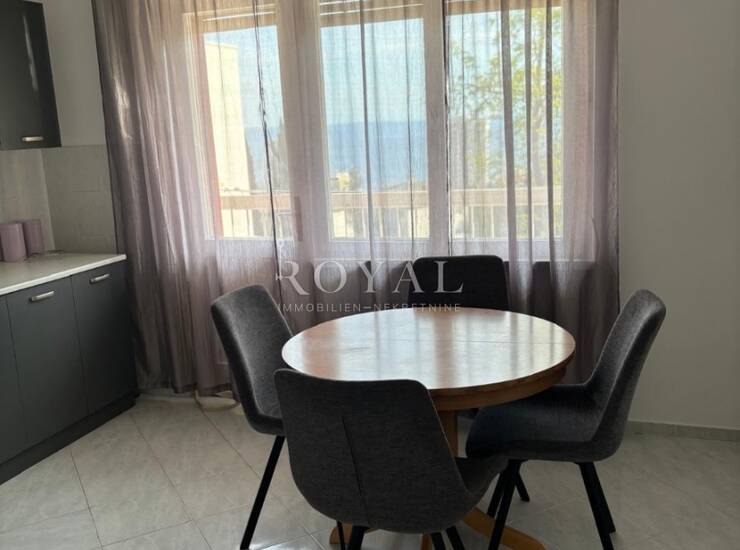 Raspored prostorija je praktičan i funkcionalan: dnevni boravak povezan s kuhinjom pruža prostran osjećaj, dok spavaća soba nudi mir i privatnost. Balkon je savršeno mjesto za jutarnju kavu ili večernje opuštanje uz pogled na more.