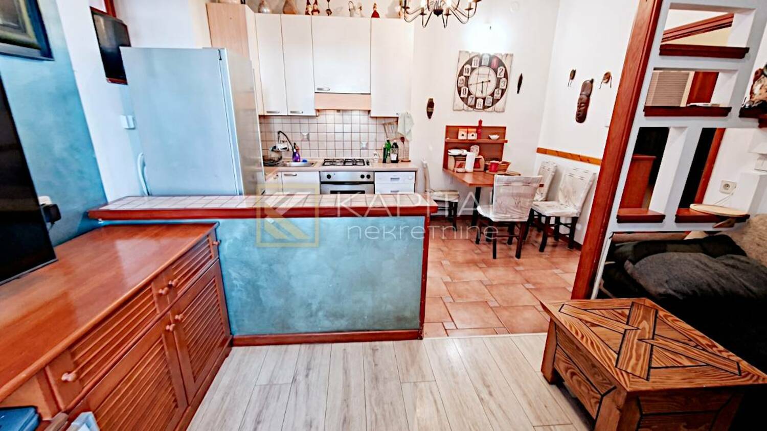 Adaptiran stan na Kozali površine 45.24 m2 s okućnicom od 30 m2 na korištenje. Stan ima zaseban ulaz. Sastoji se od hodnika, dvije sobe, kupaonice i open space kuhinje s blagovaonicom i dnevnim boravkom s izlazom na okućnicu. Na okućnici su roštilj i drvarnica. Obnovljeni su krov i fasada. Dnevni boravak ima podno grijanje na struju i klima inverter. U kuhinji postoji dimnjak koji se trenutno ne koristi. PVC stolarija zamijenjena je prije nekoliko godina. Za sve informacije nazovite 091/540-8... Prikaži broj ili 099/2196... Prikaži broj .