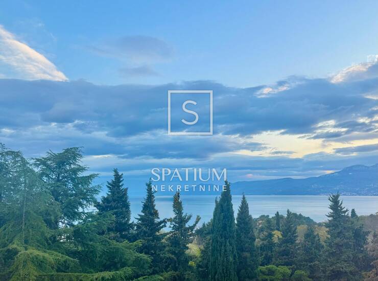 Iz dnevnog boravka i glavne spavaće sobe izlazi se na prostranu južnu terasu površine 10 m², s koje se pruža otvoren pogled na more i Lovran. Uz terasu se nalazi i vlastita okućnica od 15 m², što ovoj nekretnini daje dodatnu vrijednost i rijetkost na tržištu.