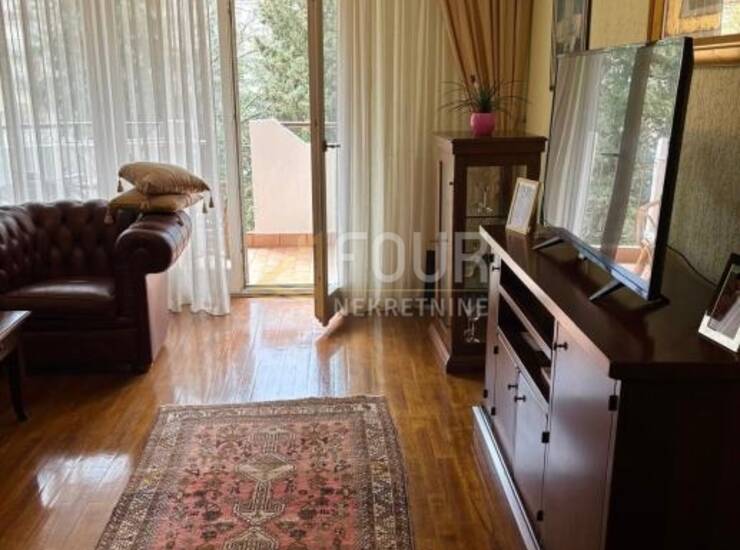 Prodaje se namješten i opremljen je etažnim plinskim grijanjem, dvjema klimama te mramornom pločom u dnevnom boravku, što osigurava ugodan boravak tijekom cijele godine. Prostor uključuje dnevni boravak s kuhinjom, dvije spavaće sobe, hodnik, kupaonicu, zaseban WC i dvije lođe, od kojih veća ima izlaz iz dnevnog boravka i kuhinje, a manja iz spavaće sobe.