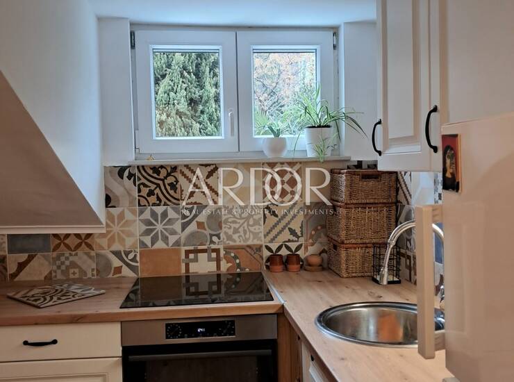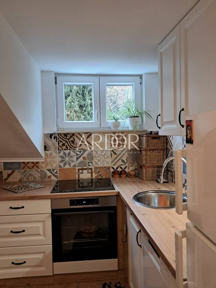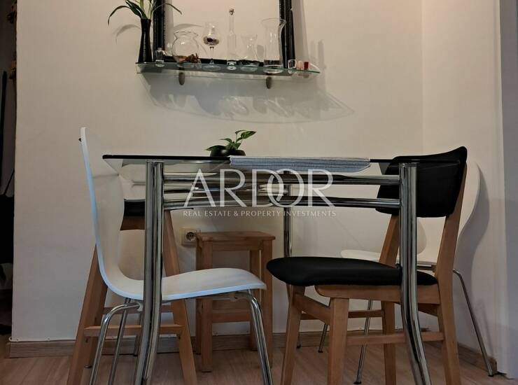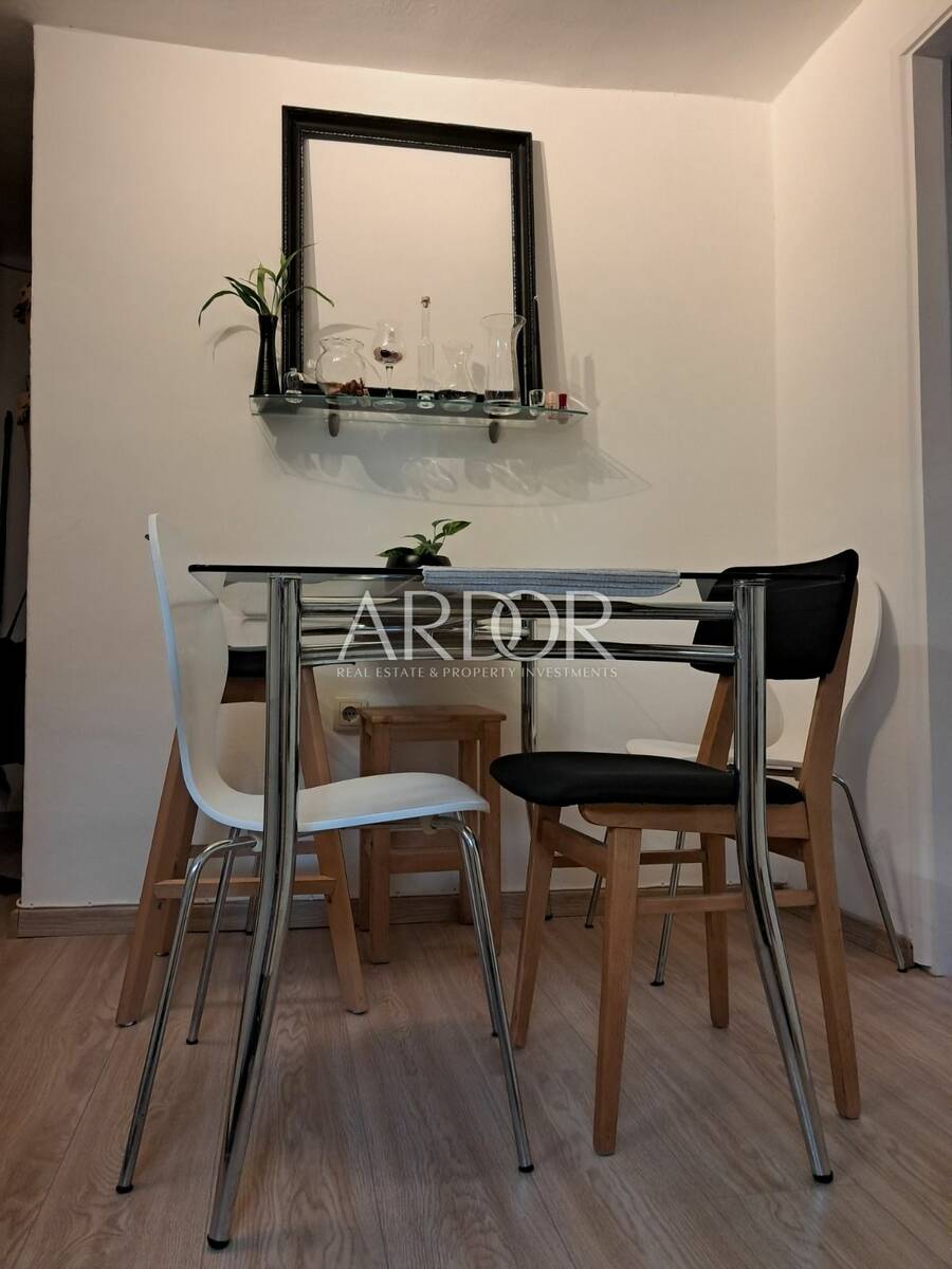 Prostor je funkcionalno organiziran i obuhvaća dnevni boravak povezan s kuhinjom i blagovaonicom, spavaću sobu te kupaonicu. Opremljen je svim potrebnim namještajem, tako da novi vlasnik može bez dodatnih ulaganja odmah koristiti stan.