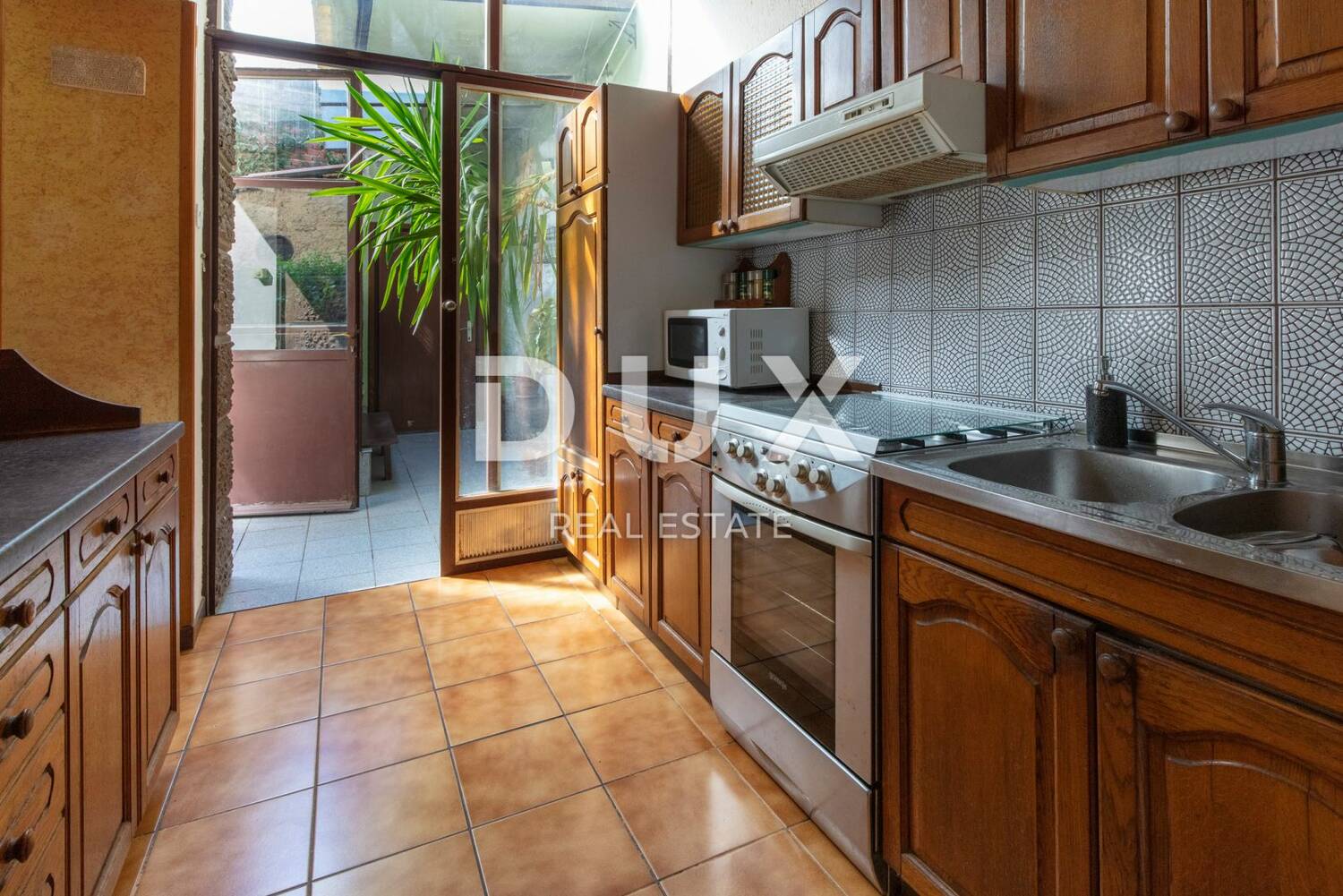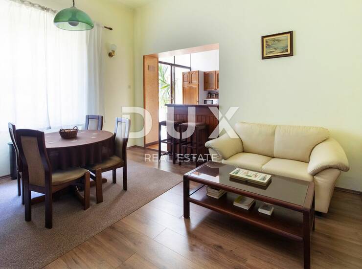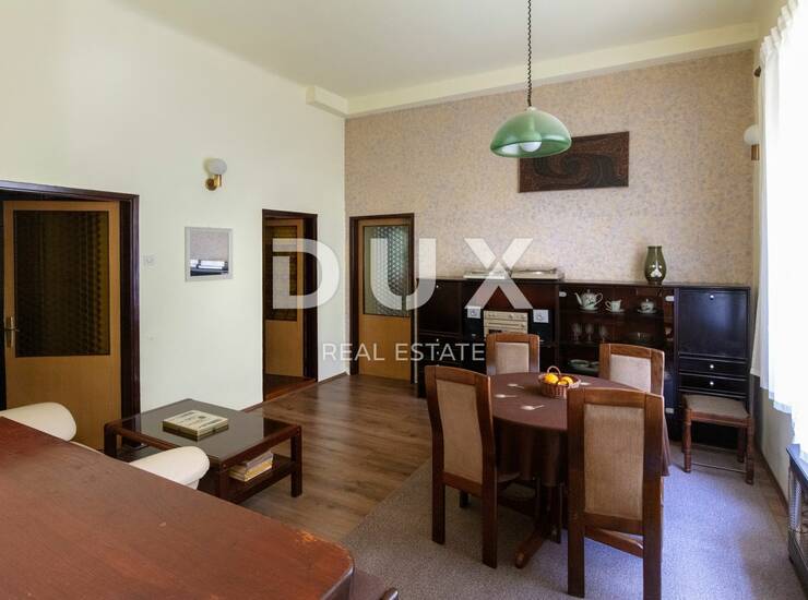 Posredujemo u prodaji stana u prizemlju starije zgrade, ispred kojeg je lijepa ograđena okućnica na korištenje. U naravi on ima tri spavaće sobe i posebno dnevni boravak, ostavu, kupaonu, verandu i drvarnicu pretvorenu u radionu. Iz stana izlazimo na popločenu terasu sa roštiljem, natkrivenu gustom brajdom, te na dio sa vrtom i voćnjakom. Dio terase je pretvoren u stambeni prostor, stoga se stan može kupiti isključivo za gotovinu, ali sa svojim komforom i lijepom okućnicom nadomak centra grada, predstavlja zbilja rijetkost na tržištu. Nekretnina traži osvježenje, ali je uredna, namještena i useljiva. Grijanje je predviđeno na struju. Postoji i dimnjak ako tko voli drva ili pelete.