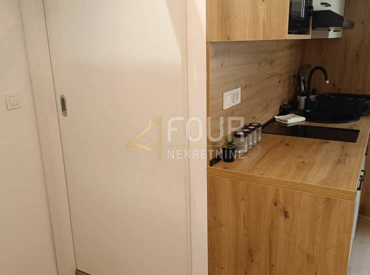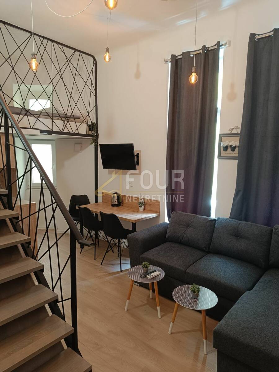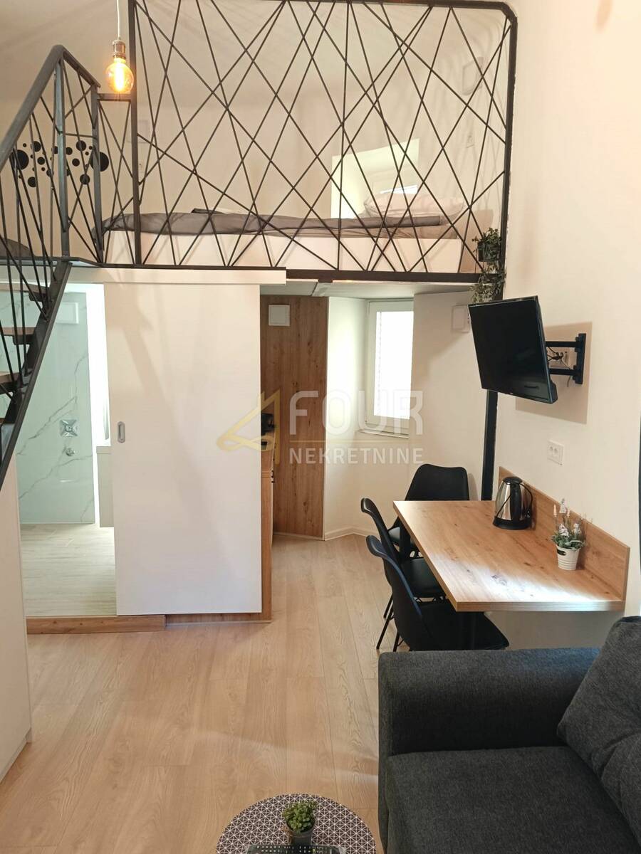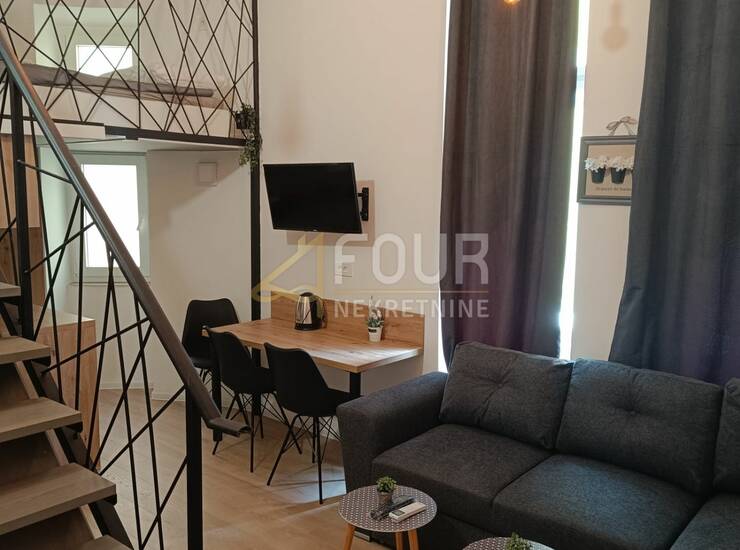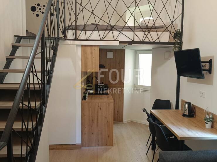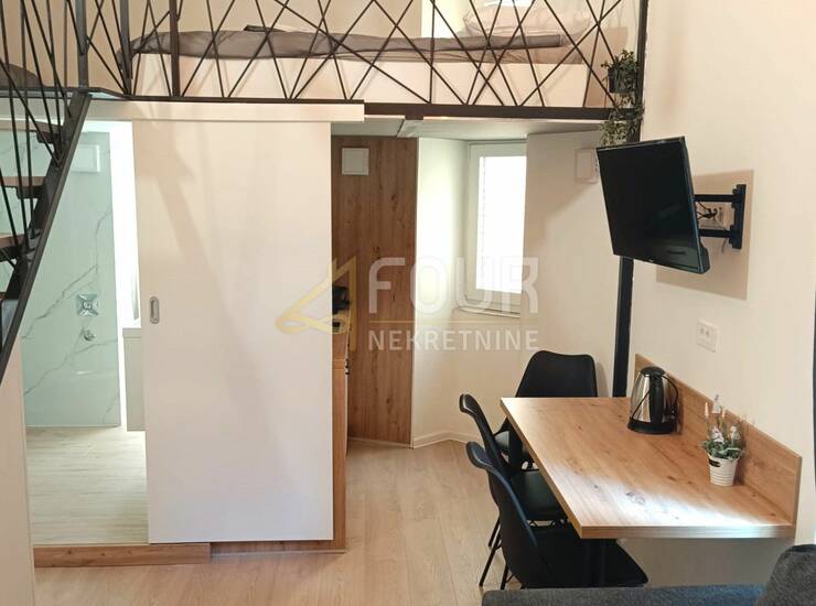 Zahvaljujući visokim stropovima, stan je maksimalno iskorišten te je uređen s dodatnom galerijom koja proširuje korisni prostor - stan ima 19.67m2, ali s galerijskim prostorom 28m2.