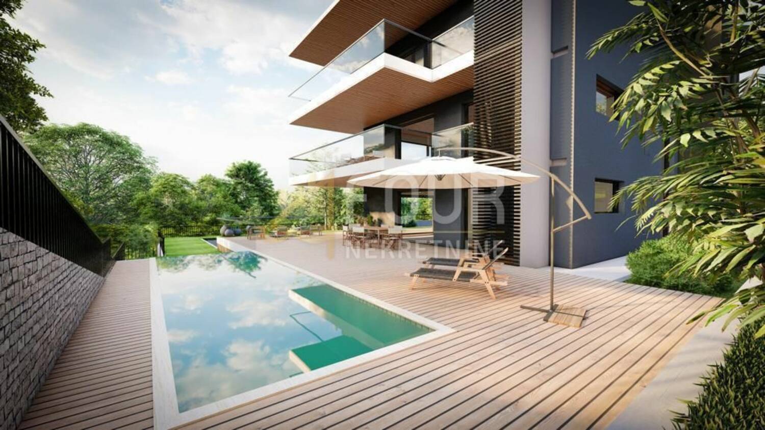 Rijeka, Bivio, novogradnja, luksuzni stan s bazenom i okućnicom
