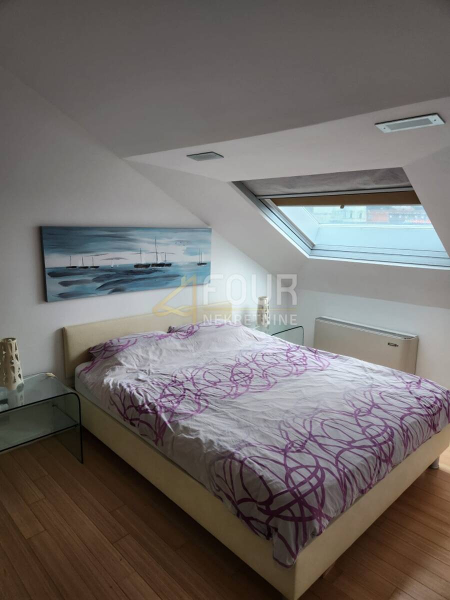 Ukupne površine 56,60 m2 odlikuje se izvrsnim rasporedom: ulazno predsoblje vodi prema odvojenom WC-u, kupaonici, komfornom dnevnom boravku te kuhinji s blagovaonom, dok su dvije spavaće sobe smještene u mirnijem dijelu stana. Prostor je potpuno opremljen i namješten, s podnim grijanjem u cijelom stanu te fan-coil sustavom za grijanje i hlađenje, što osigurava vrlo ugodnu klimu tijekom cijele godine i izrazito niske režije.