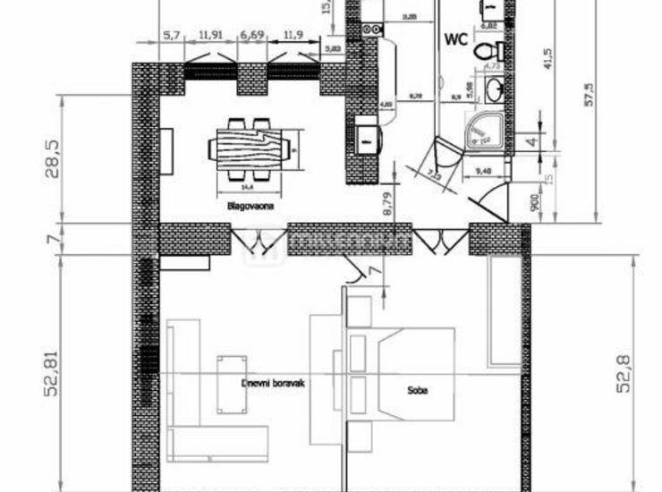 Moderno uređen, vrlo komforan stambeni prostor od 66m2 koji se sastoji od kuhinje, blagovaonice, dnevnog boravka, spavaće sobe i kupaonice.