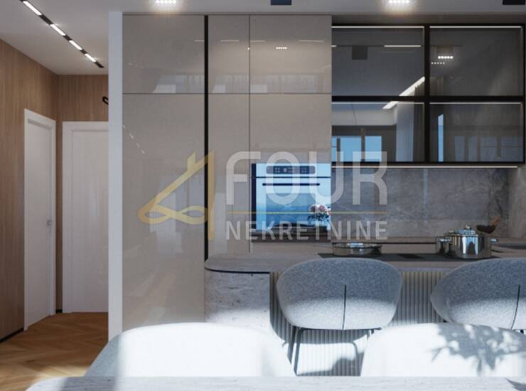 Stan će biti opremljen suvremenim sustavima i materijalima, uključujući podno grijanje, električne rolete te protuprovalna ulazna vrata.