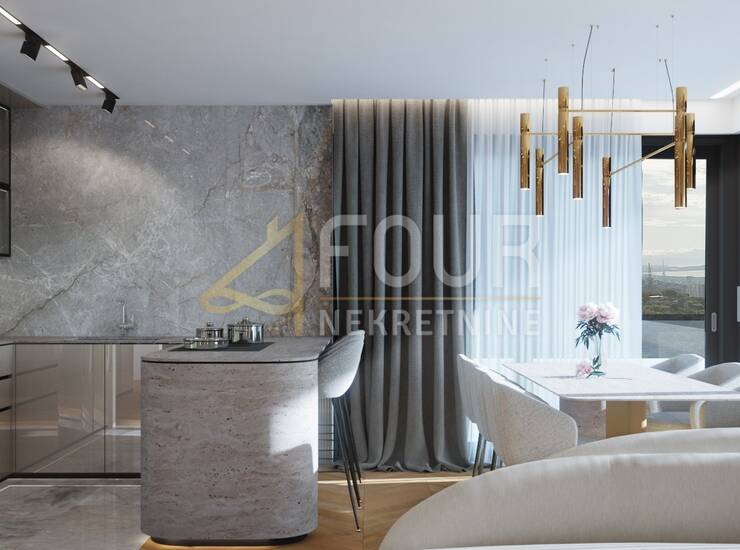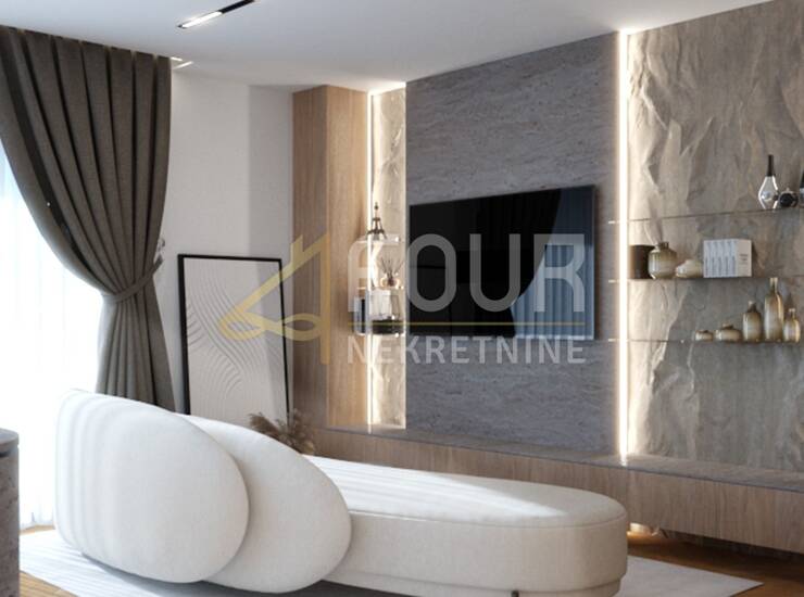 Stan će biti opremljen suvremenim sustavima i materijalima, uključujući podno grijanje, električne rolete te protuprovalna ulazna vrata.